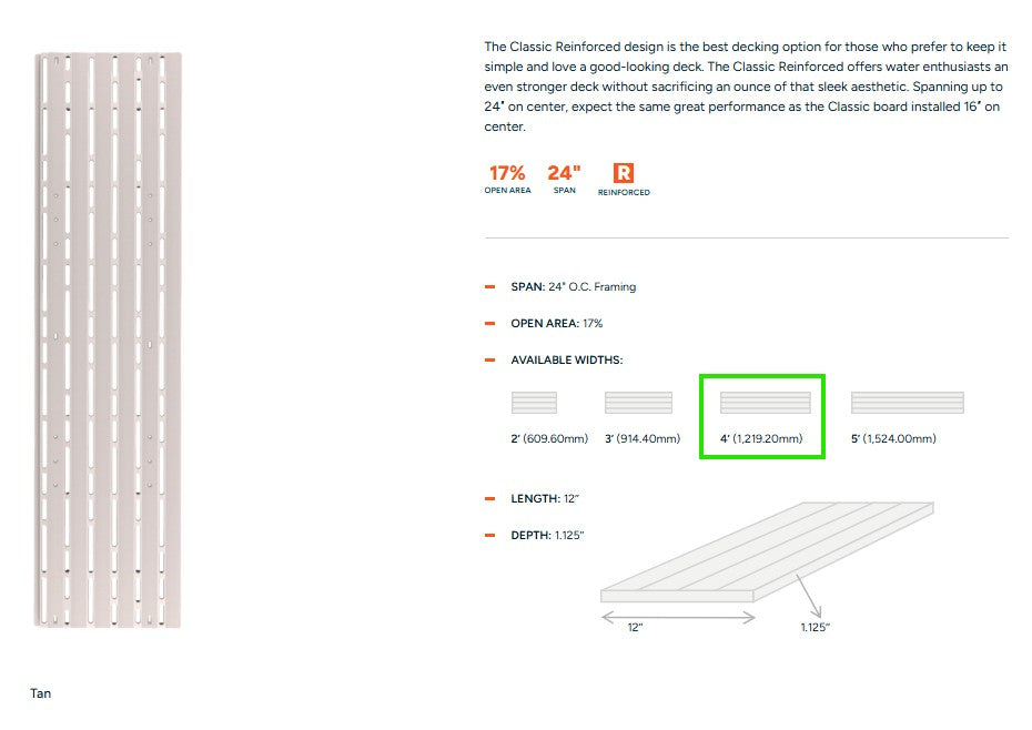 - Add aluminum stiffeners to create a reinforced Titan Deck board able to cover longer spans and for more stability on your boat dock system.