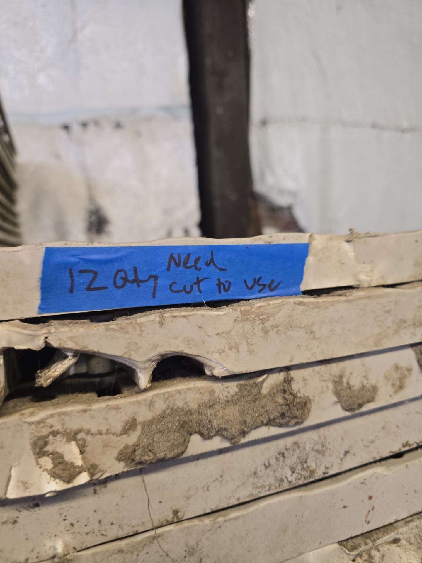 These panels were previously used on a gangway. They have been removed and do need to be cleaned. There are 50 panels in pretty good shape. The remaining 12 panels have varying degrees damage and will most likely need to be cut down into smaller sections to be used as repair sections.